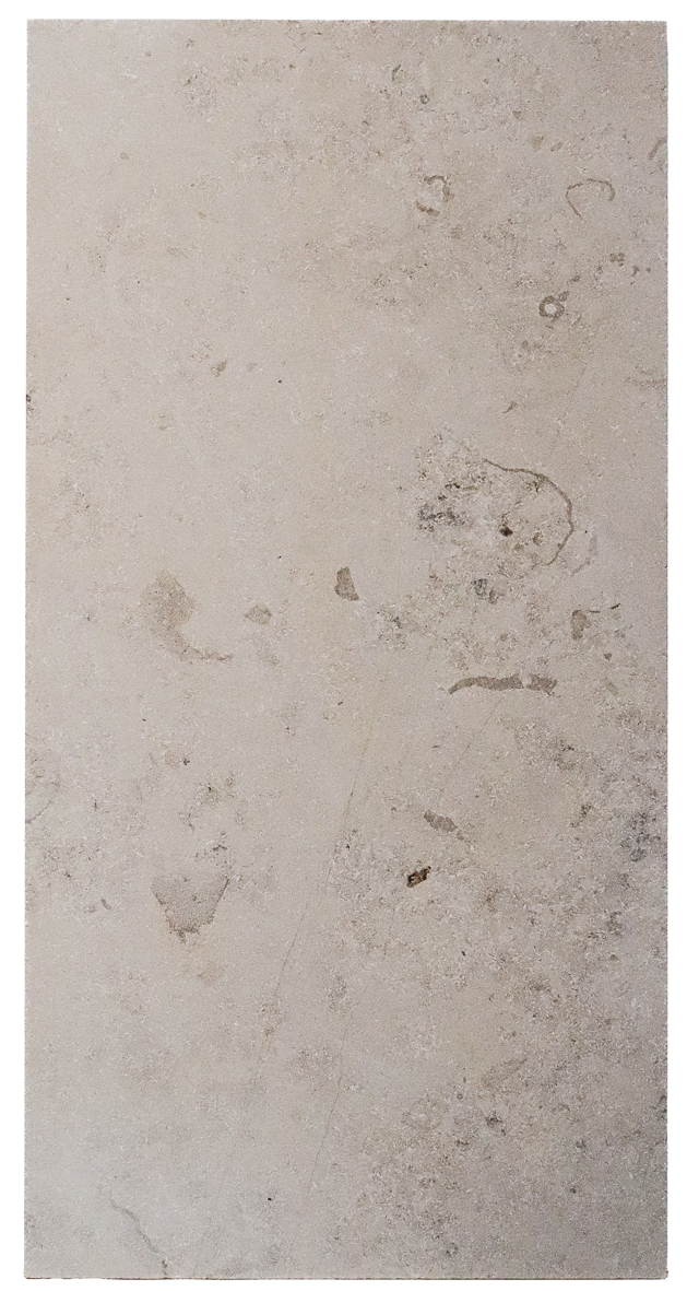 Cross-cut Jura stone is produced by cutting the block perpendicular to its natural bedding layers, rather than parallel to them. This slicing method reveals the full natural character of the limestone, including its fossil content, cloud-like patterning, tonal variations, and subtle mineral blooms. In contrast to the linear appearance of vein-cut material, cross-cut Jura displays a soft, organic, more random aesthetic, where ancient fossils and natural textures become prominent features. This is the form most commonly associated with traditional Jura limestone and is often chosen for its expressive natural beauty. Cross-cut stone generally provides good stability and a balanced appearance for tiles, slabs, and architectural components. Cross-Cut is available in all the regular surface options.