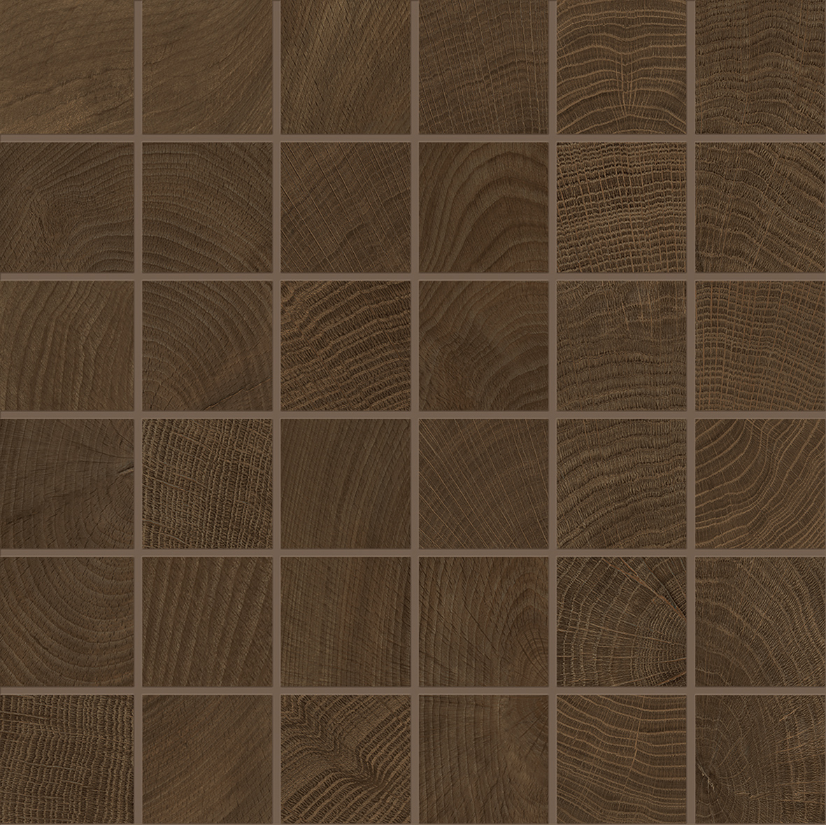 W-Circles is a contemporary wood-look tile collection inspired by the natural growth rings of timber. The range is further enhanced by the Walnut Mosaic 50x50 format, introducing visual interest for more expressive, layered spaces.