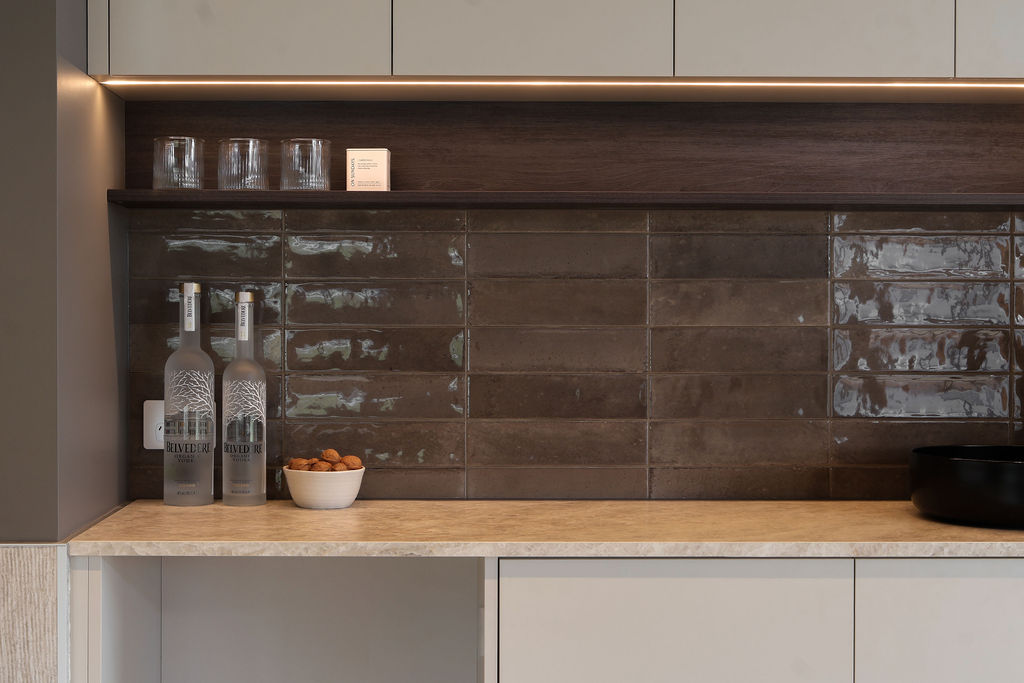 Hope Espresso offers a softly aged aesthetic with a hand-finished gloss surface, bringing depth and character to contemporary interiors. Subtle tonal variation across a palette of rich, moody hues creates a refined sense of movement, adding sophistication and quiet drama to a range of spaces.