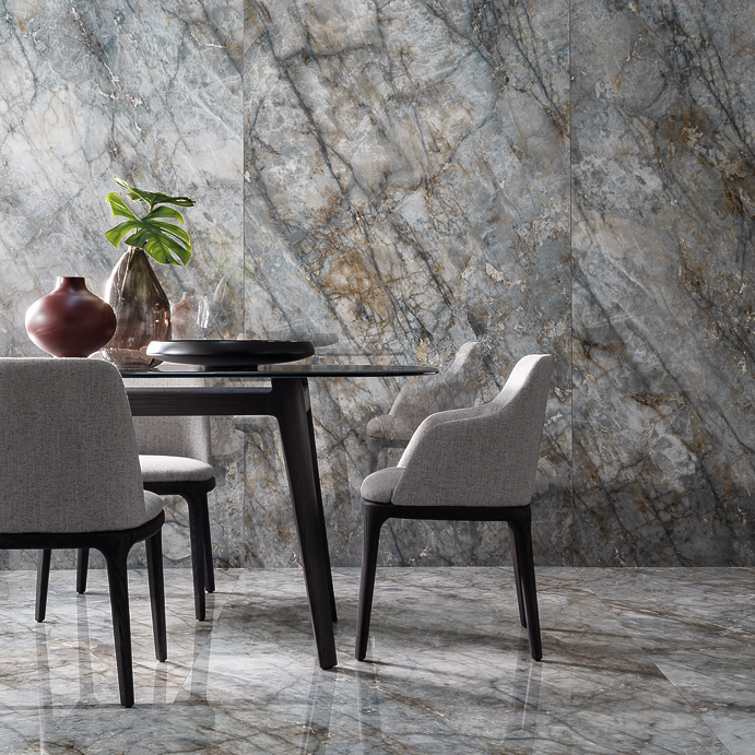 With its expressive marble graphics, TDM Revolution Verde Saint Denis introduces depth, rhythm and material intensity. The collection supports large format applications and feature installations, bringing a heightened level of refinement to contemporary interior environments.