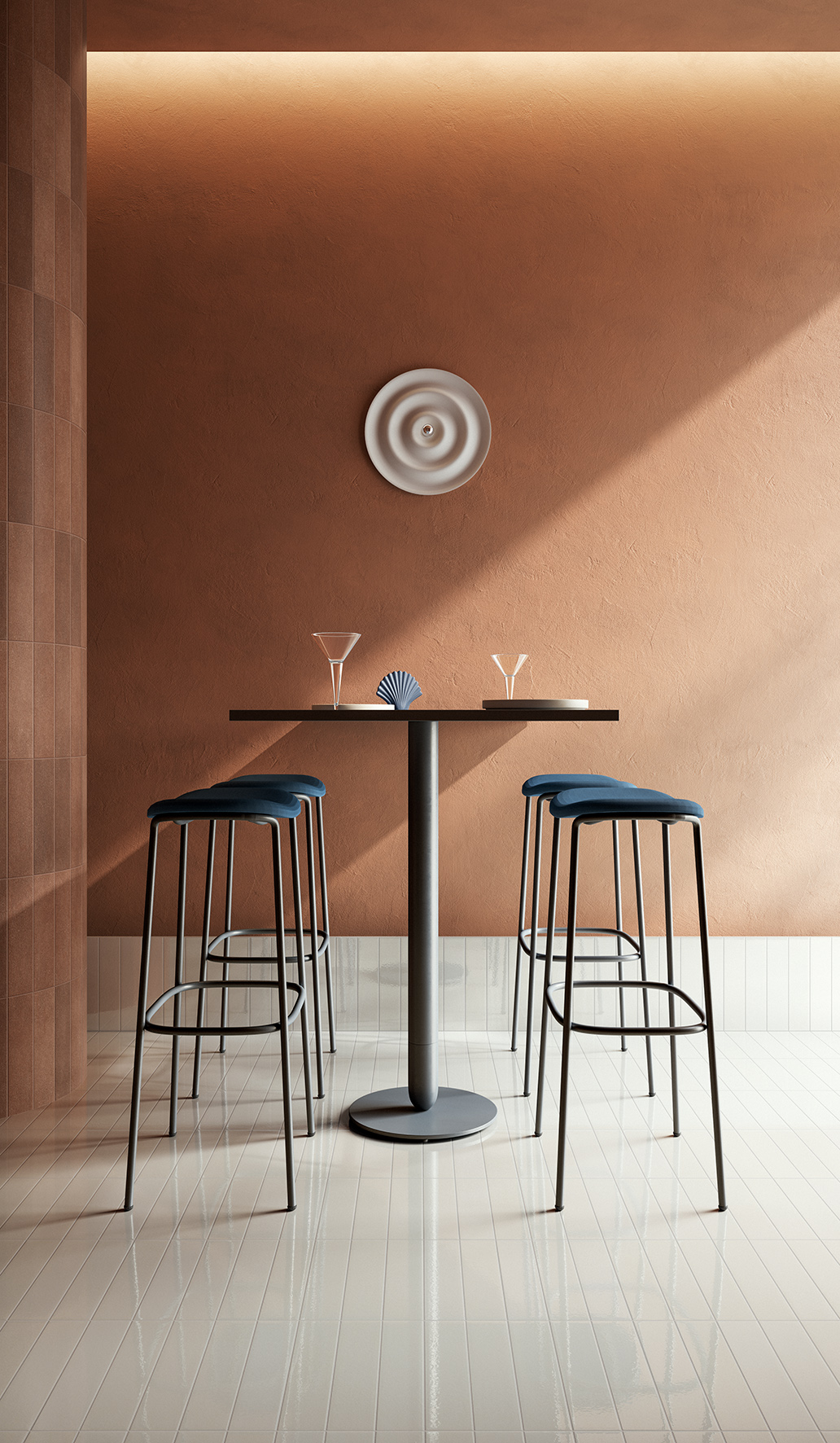 Porta Nuova Cotto embodies the dynamic spirit of contemporary Milan. Smooth surfaces and glossy finishes characterise a collection featuring an irresistible pop aesthetic. The brick size enables the creation of unique compositions, unleashing the creativity of architects and designers alike.