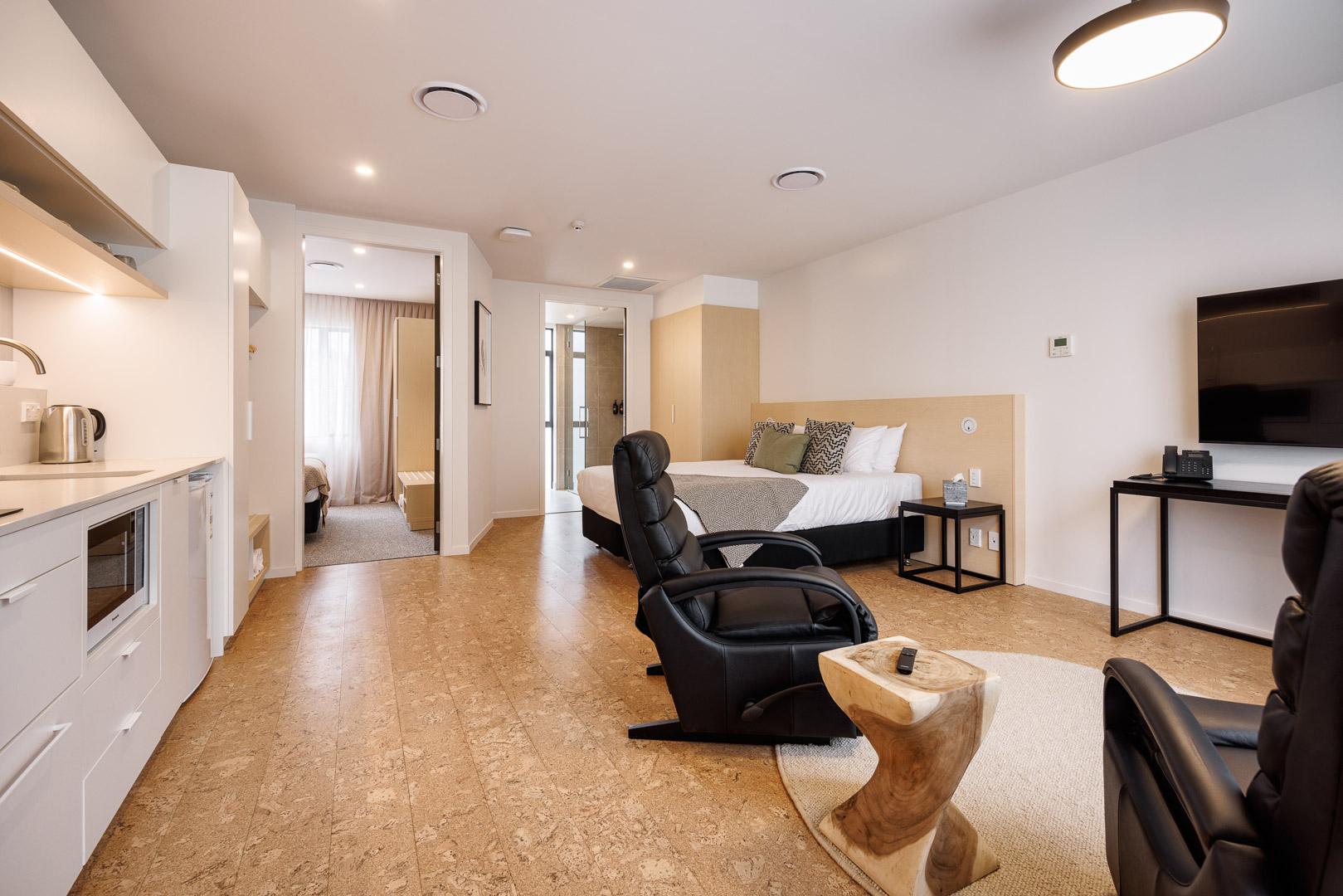 Product Choice: The design team selected Quantum's Wise Cork in Original Shell to align with the natural theme of the interiors. The cork planks provided a unique aesthetic that distinguished the apartments from other accommodation options. Additionally, the natural properties of cork, such as warmth and acoustic benefits, made it an ideal choice for this high-performance environment.