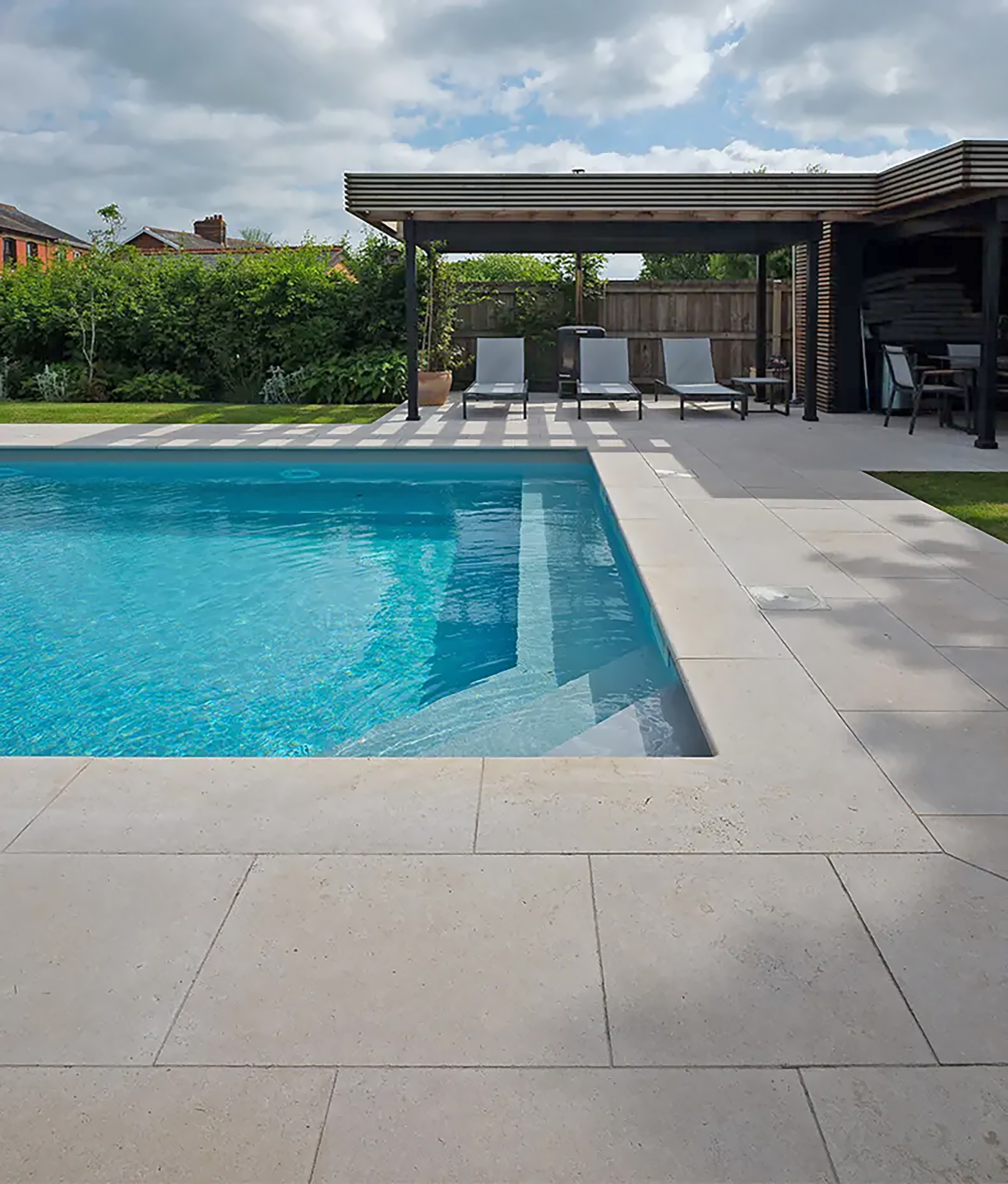 Biscoff Arendo's surface provides for a beautiful, textural element with this warm beige Limestone. Through several processes, this unique surface is created to bring a softly structured finish which is soft underfoot, whilst retaining an anti-slip element for exterior applications such as patios, paths and pool surrounds.