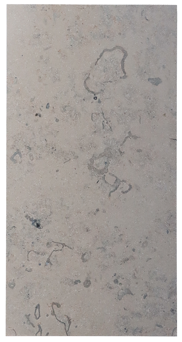 Cross-cut Jura stone is produced by cutting the block perpendicular to its natural bedding layers, rather than parallel to them. This slicing method reveals the full natural character of the limestone, including its fossil content, cloud-like patterning, tonal variations, and subtle mineral blooms. In contrast to the linear appearance of vein-cut material, cross-cut Jura displays a soft, organic, more random aesthetic, where ancient fossils and natural textures become prominent features. This is the form most commonly associated with traditional Jura limestone and is often chosen for its expressive natural beauty. Cross-cut stone generally provides good stability and a balanced appearance for tiles, slabs, and architectural components. Cross-Cut is available in all the regular surface options.