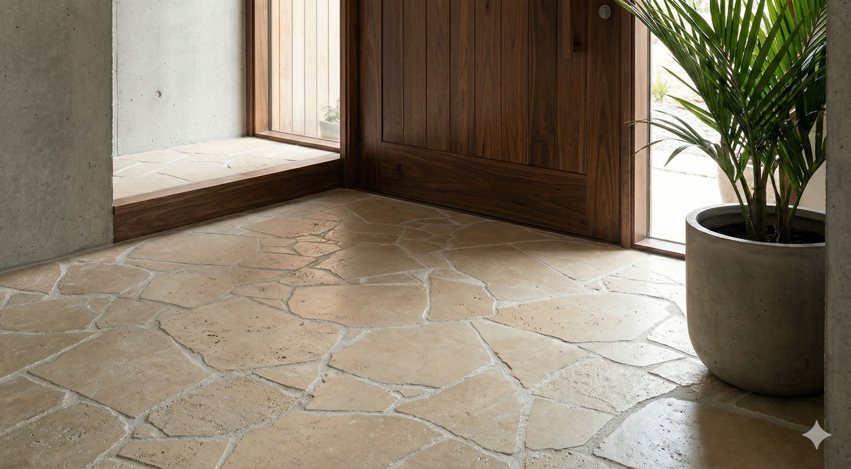The Sparta Crazy Pave Tumbled installation style features irregular stone pieces laid randomly to ensure a unique aesthetic in every application. Whilst it sits perfectly in stylish outdoor settings, it can add real organic texture and powerful visual impact when laid throughout interior floors and walls. This material is the classic more traditional and lightly tumbled style.