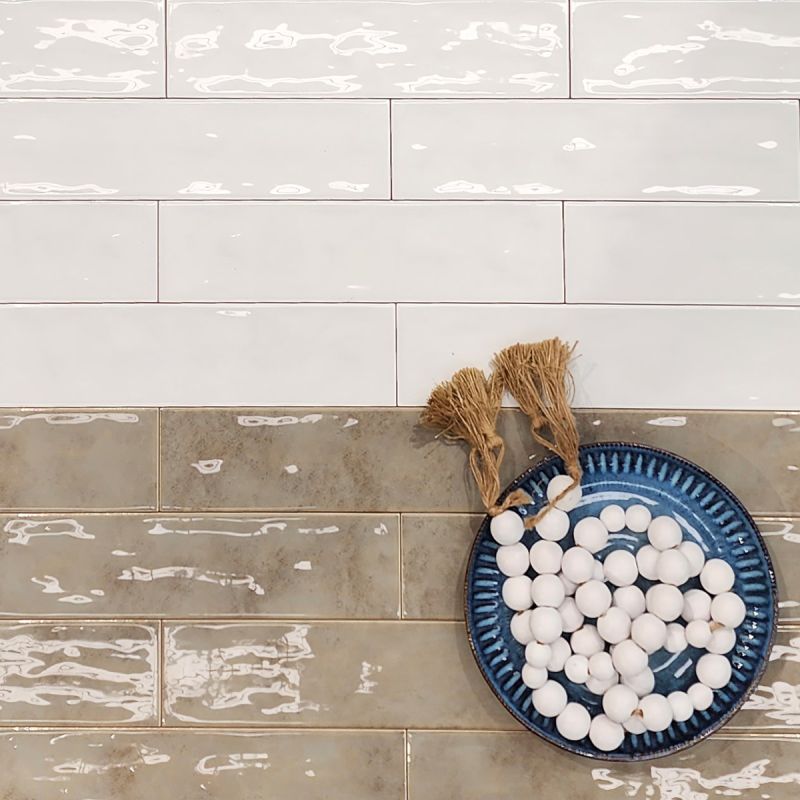 A rippling, glossy surface paired with a soft white coastal tone. Lay these in a classic brick fashion or try something trendier to create a peaceful ambiance in your space.