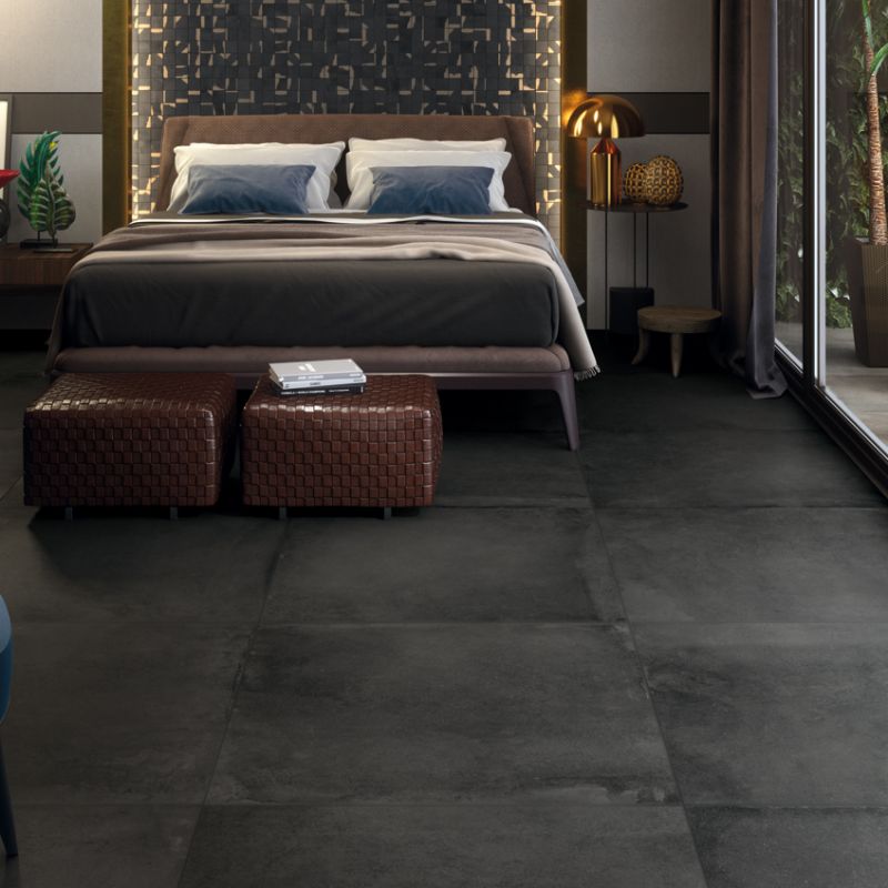 A trendy interpretation of the original red clay tiles; Cottofaenza Nero’s light gloss oxidation near some edges pays homage to the original technique of firing the tiles over an open fire.
