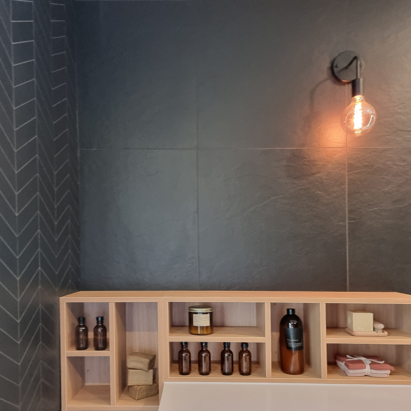 Vantablack Slate is a bold pure black porcelain tile that brings depth and sophistication to any space. Understated yet powerful, this timeless tile creates a statement with its refined elegance and dramatic simplicity.