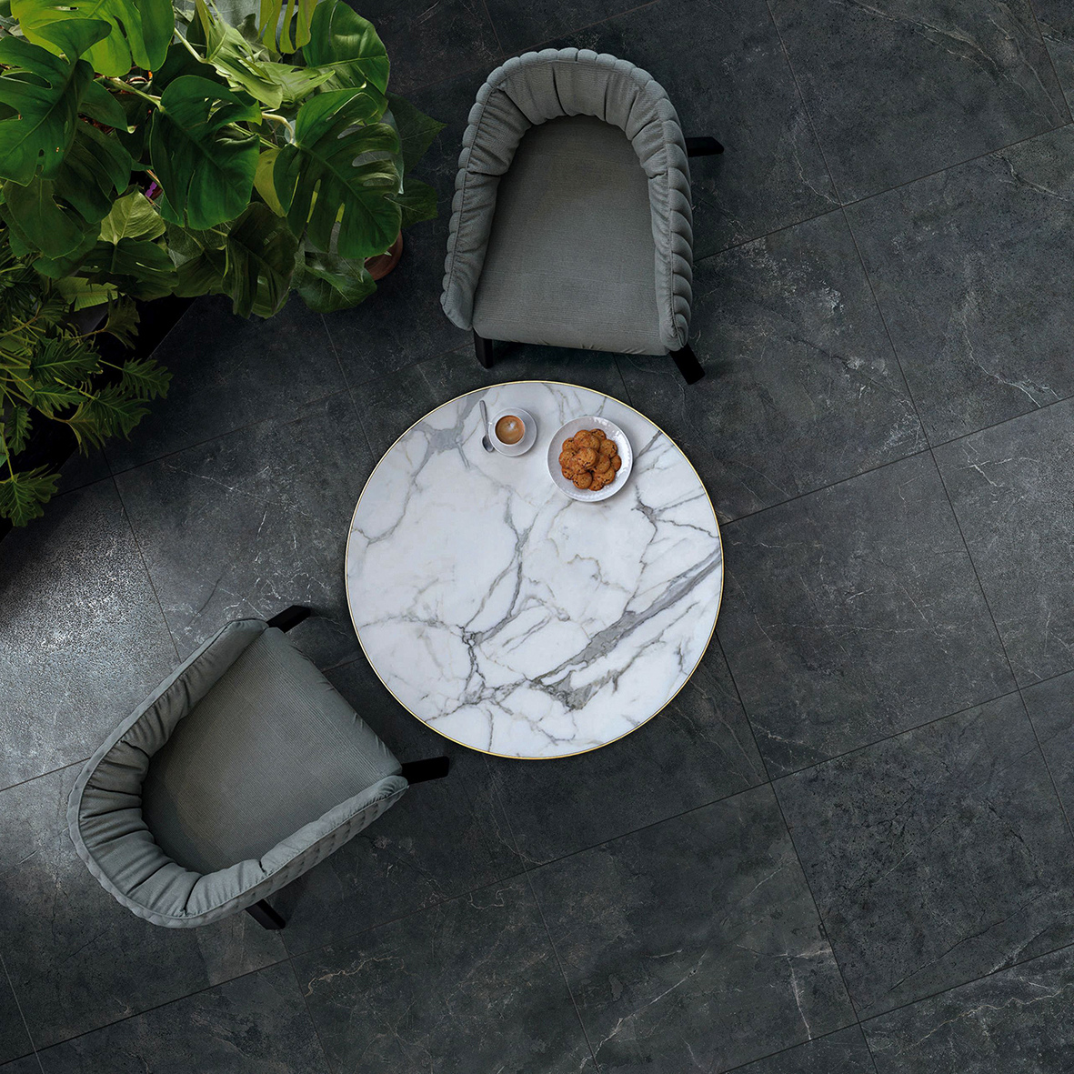 Delta Charcoal captures the quiet elegance of aged stone with a refined, modern twist. Subtle veining and organic textures flow across the surface, creating a timeless aesthetic suited to both residential and commercial spaces.