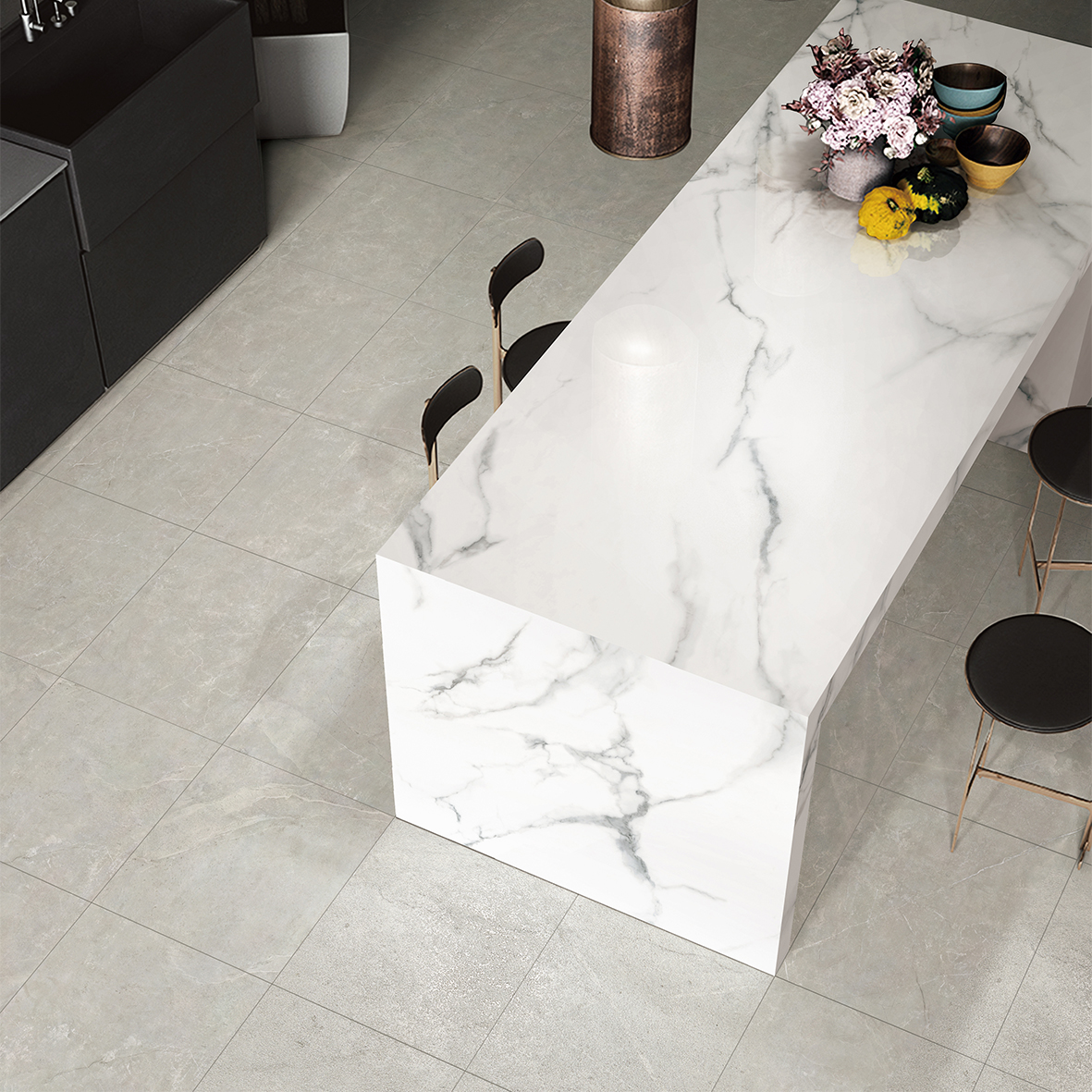 Delta Charcoal captures the quiet elegance of aged stone with a refined, modern twist. Subtle veining and organic textures flow across the surface, creating a timeless aesthetic suited to both residential and commercial spaces.