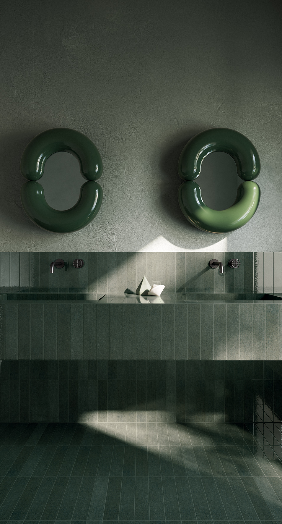 Porta Nuova Petrolio embodies the dynamic spirit of contemporary Milan. Smooth surfaces and glossy finishes characterise a collection featuring an irresistible pop aesthetic. The brick size enables the creation of unique compositions, unleashing the creativity of architects and designers alike.