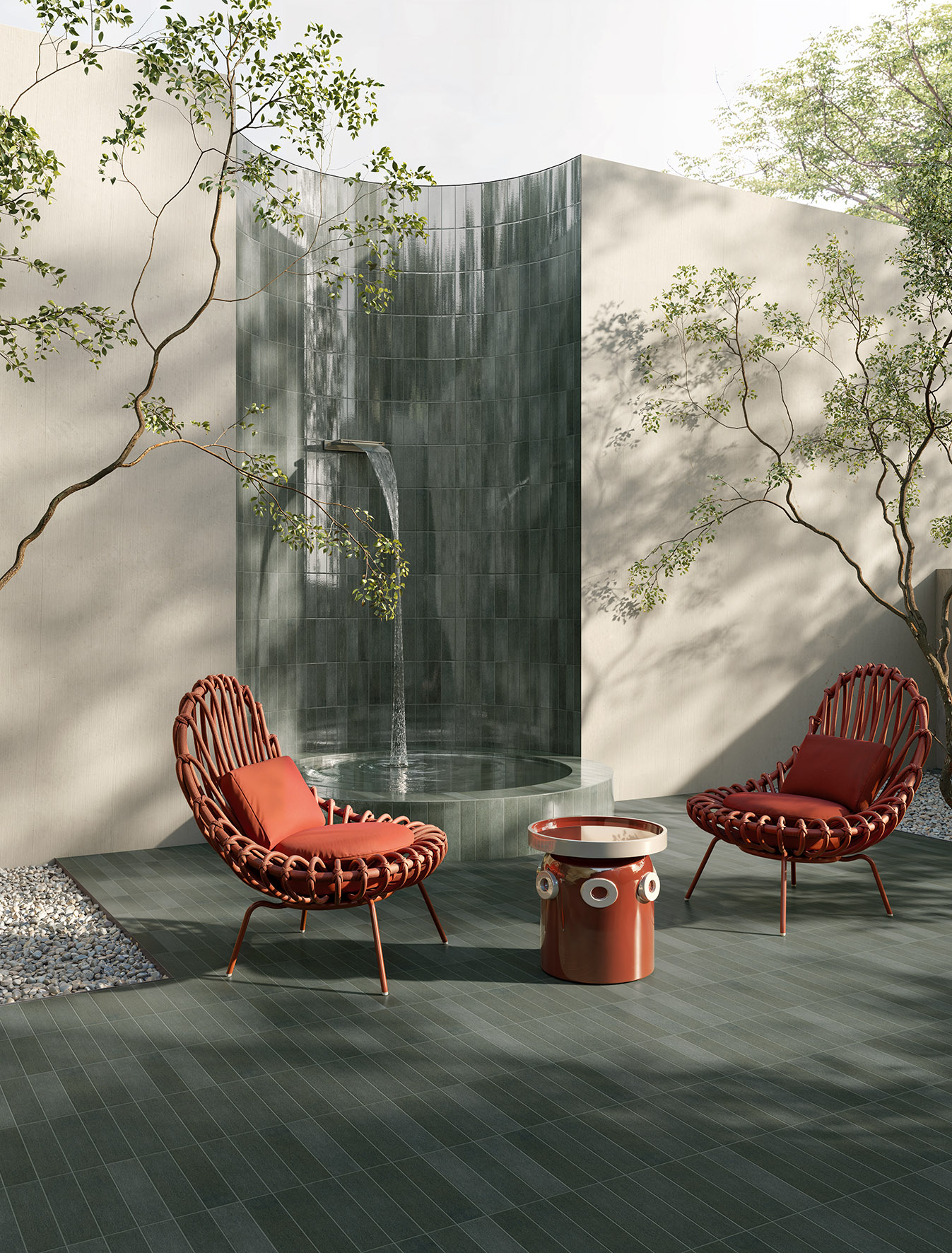 Porta Nuova Cotto embodies the dynamic spirit of contemporary Milan. Smooth surfaces and glossy finishes characterise a collection featuring an irresistible pop aesthetic. The brick size enables the creation of unique compositions, unleashing the creativity of architects and designers alike.