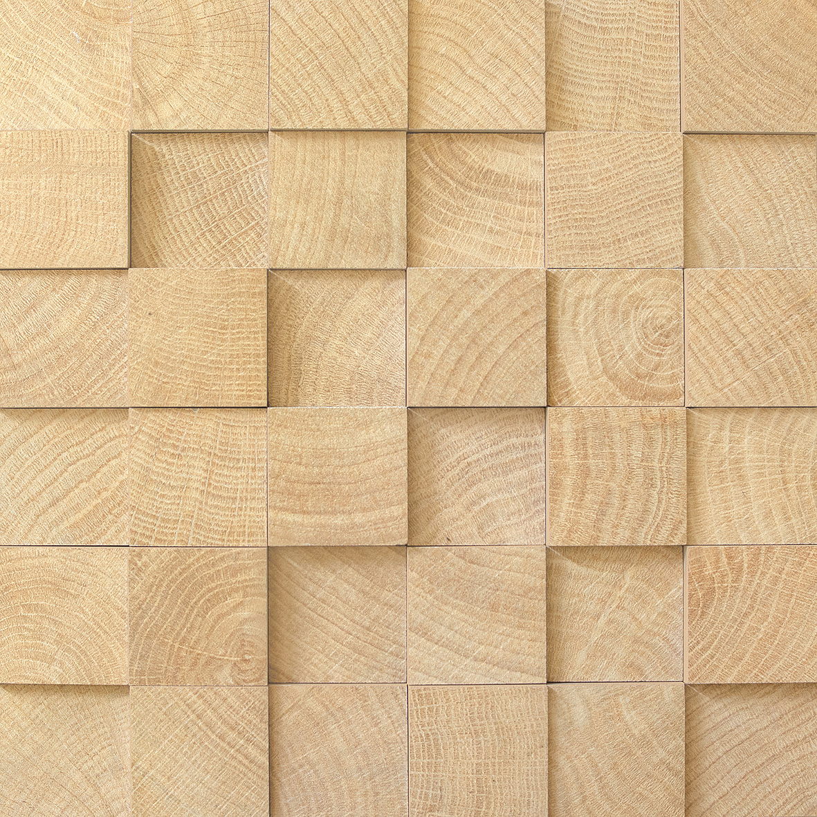 W-Circles Oak Mosaic 3D Cube is composed of small 50x50 elements arranged to create a striking geometric cube effect, echoing the craftsmanship of hand-inlaid timber blocks. The interplay of tonal variation and form enhances the illusion of depth, bringing a sense of movement and three-dimensionality to the surface.